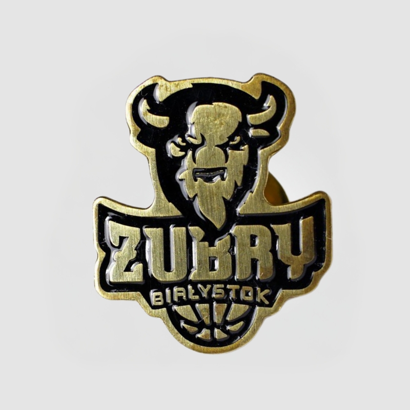 Oficjalny znaczek klubu Żubry Białystok – metalowy pins w kształcie klubowego logo z wizerunkiem żubra i piłką basketową. Stylowa, kolekcjonerska pamiątka dla kibiców, idealna do przypięcia na kurtkę, plecak lub czapkę.